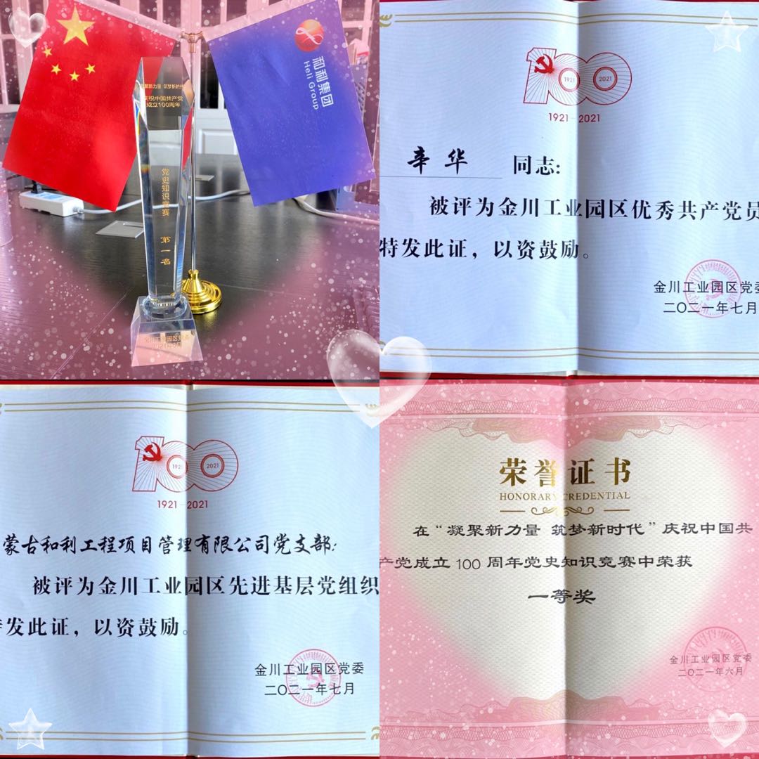 在金川黨委的正確領(lǐng)導(dǎo)下,和利黨支部全體黨員、入黨積極分子共同努力下,獲得金川工業(yè)園區(qū)舉辦的慶祝黨建100周年知識(shí)競(jìng)賽第一名、優(yōu)秀共產(chǎn)黨員稱(chēng)號(hào),榮獲“先進(jìn)基層黨組織”等榮譽(yù)。
