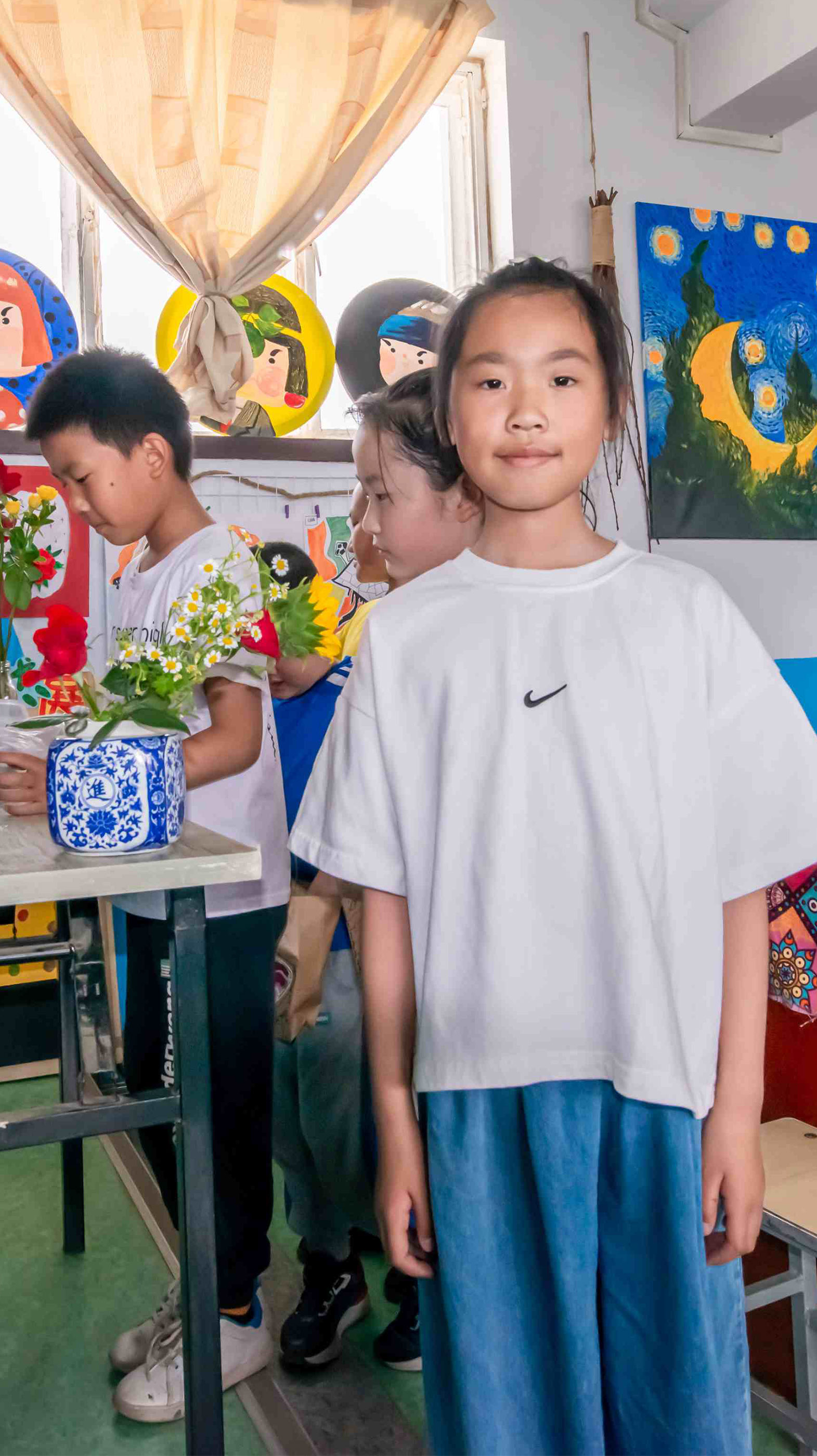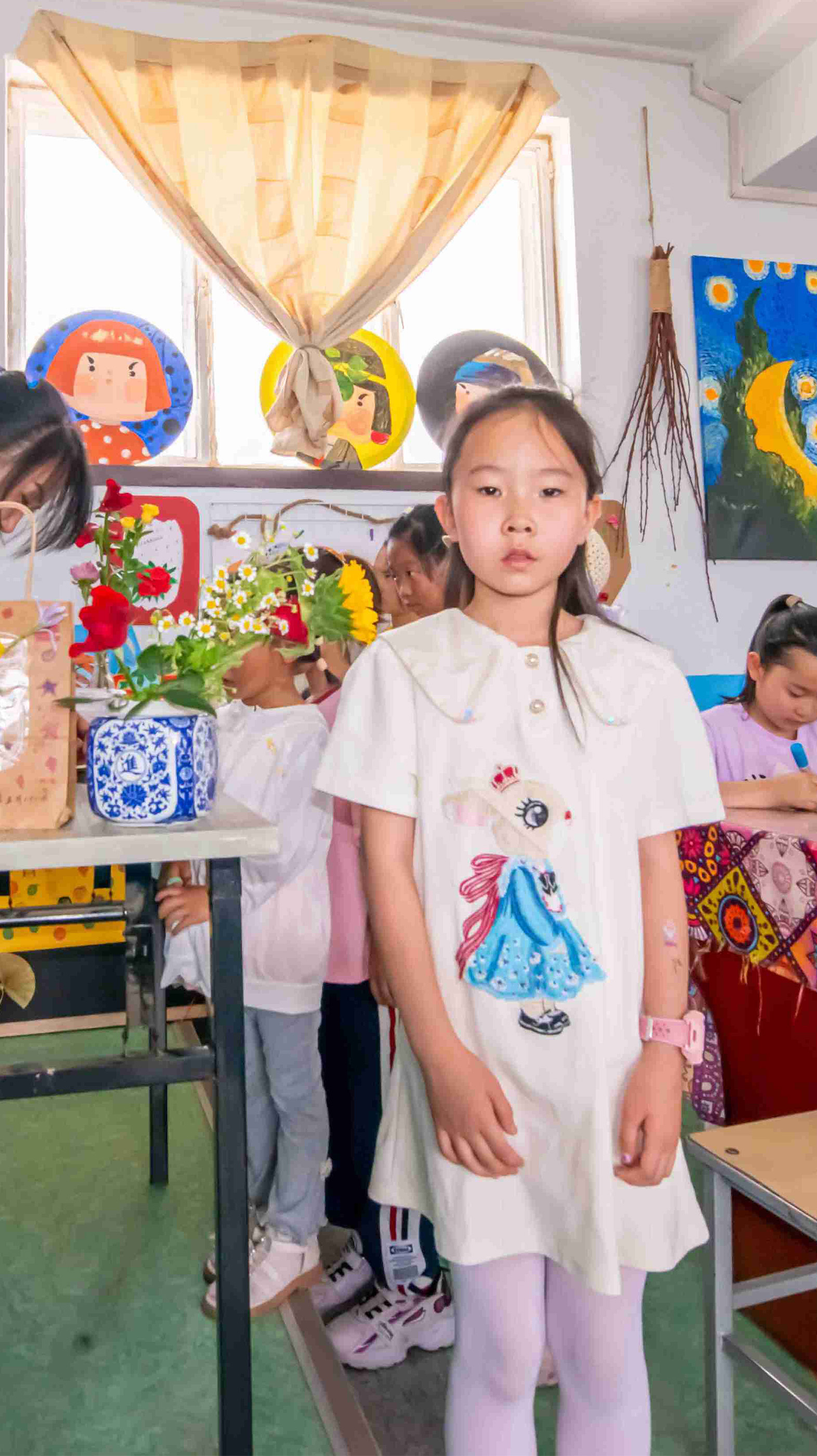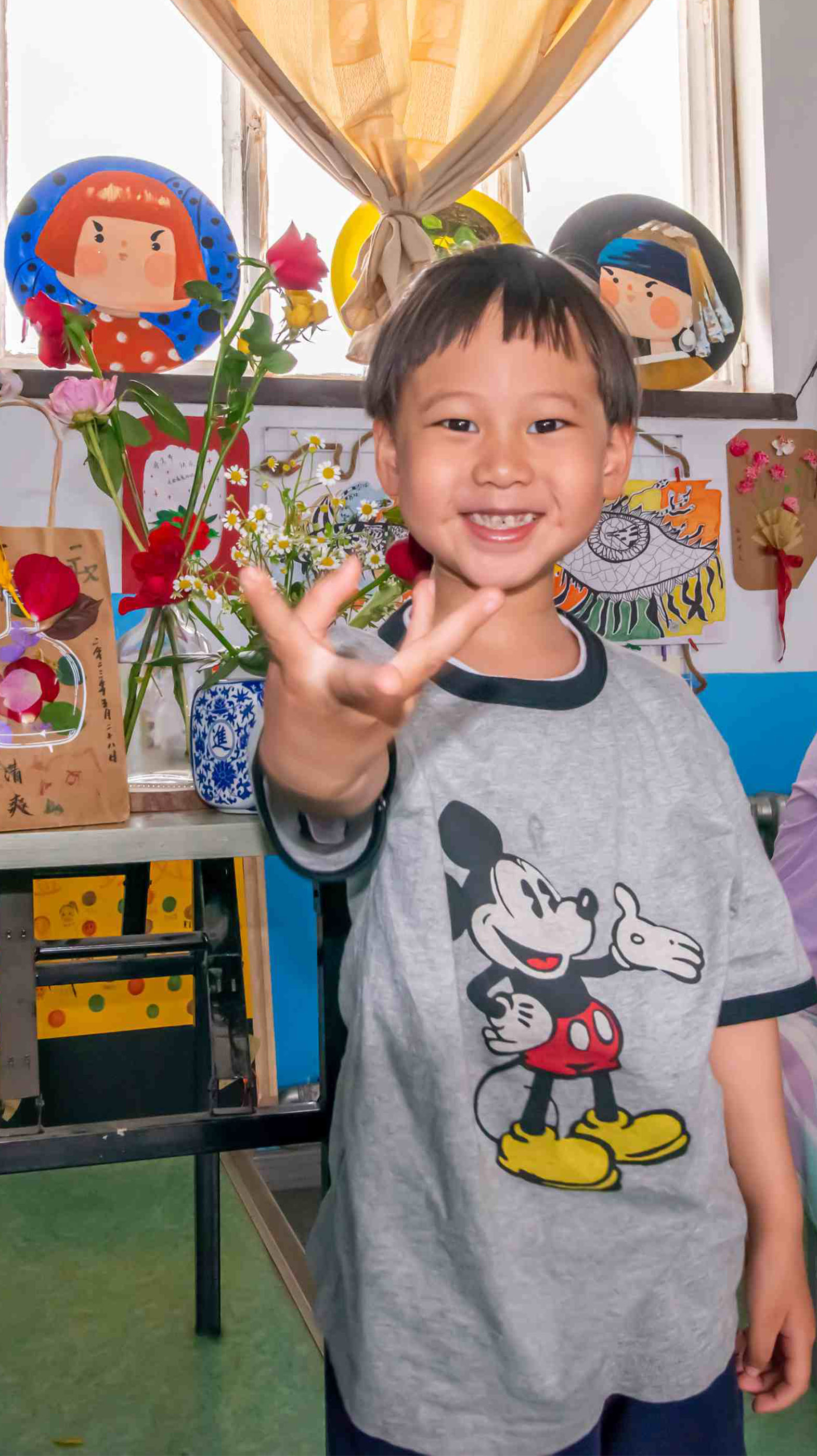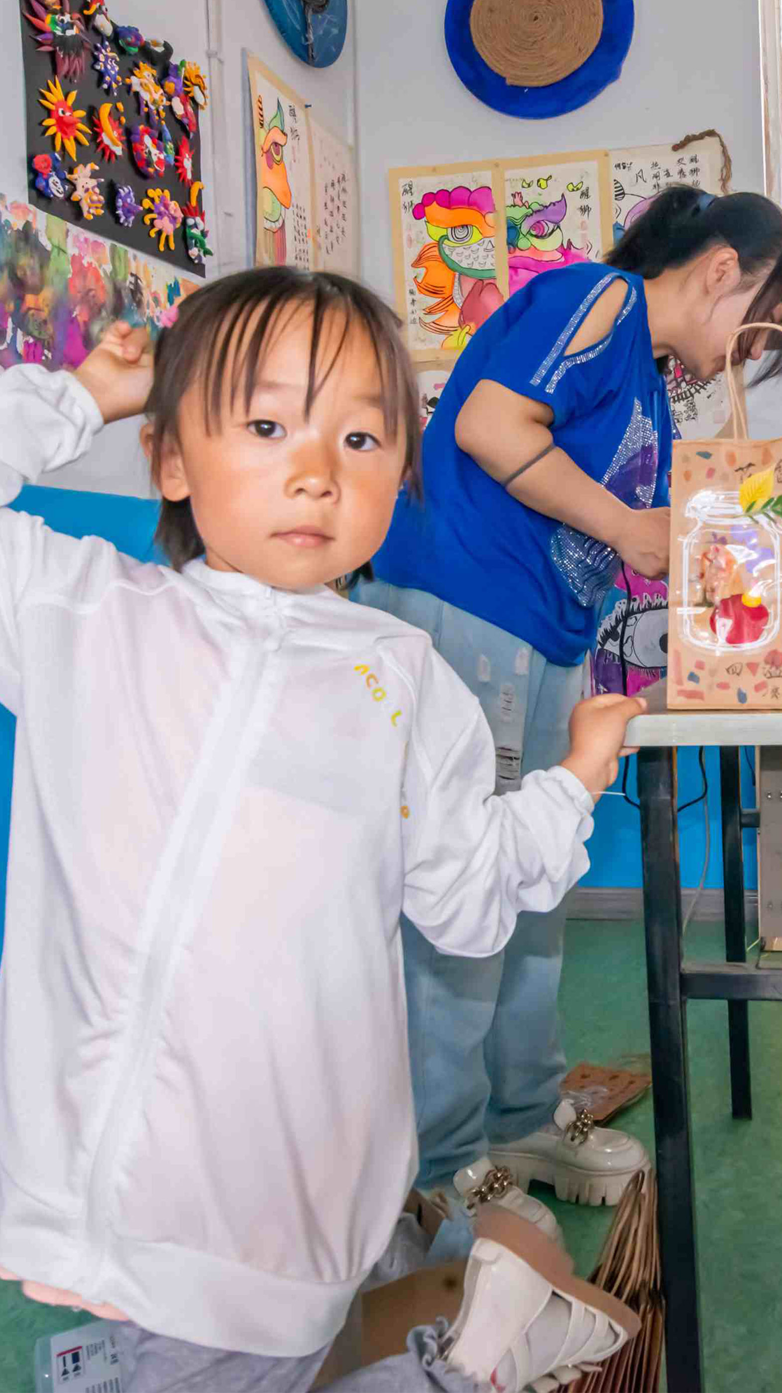 手提袋創(chuàng)意裝飾畫課程結(jié)束后,每一位孩子都與自己設(shè)計(jì)的作品合影留念,在此環(huán)節(jié)中,每一個(gè)孩子都感受到了繪畫制作的樂趣。