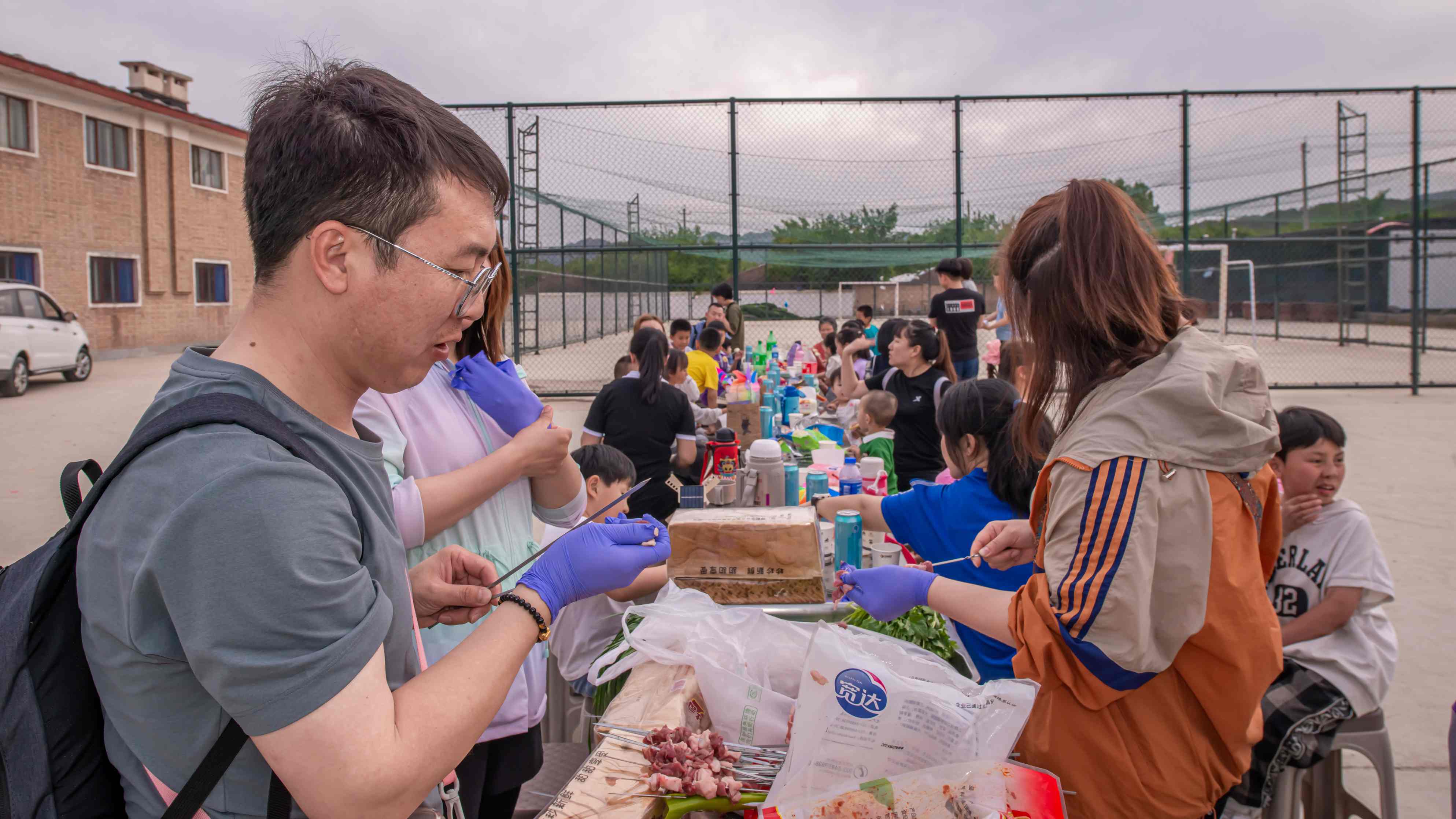 孩子們自由地在蹦床樂園里嬉戲玩耍,大人們生火、穿串、烤串,大家圍坐在一起自助燒烤,在初夏的微風(fēng)中享受和利大家庭團(tuán)聚的美好。