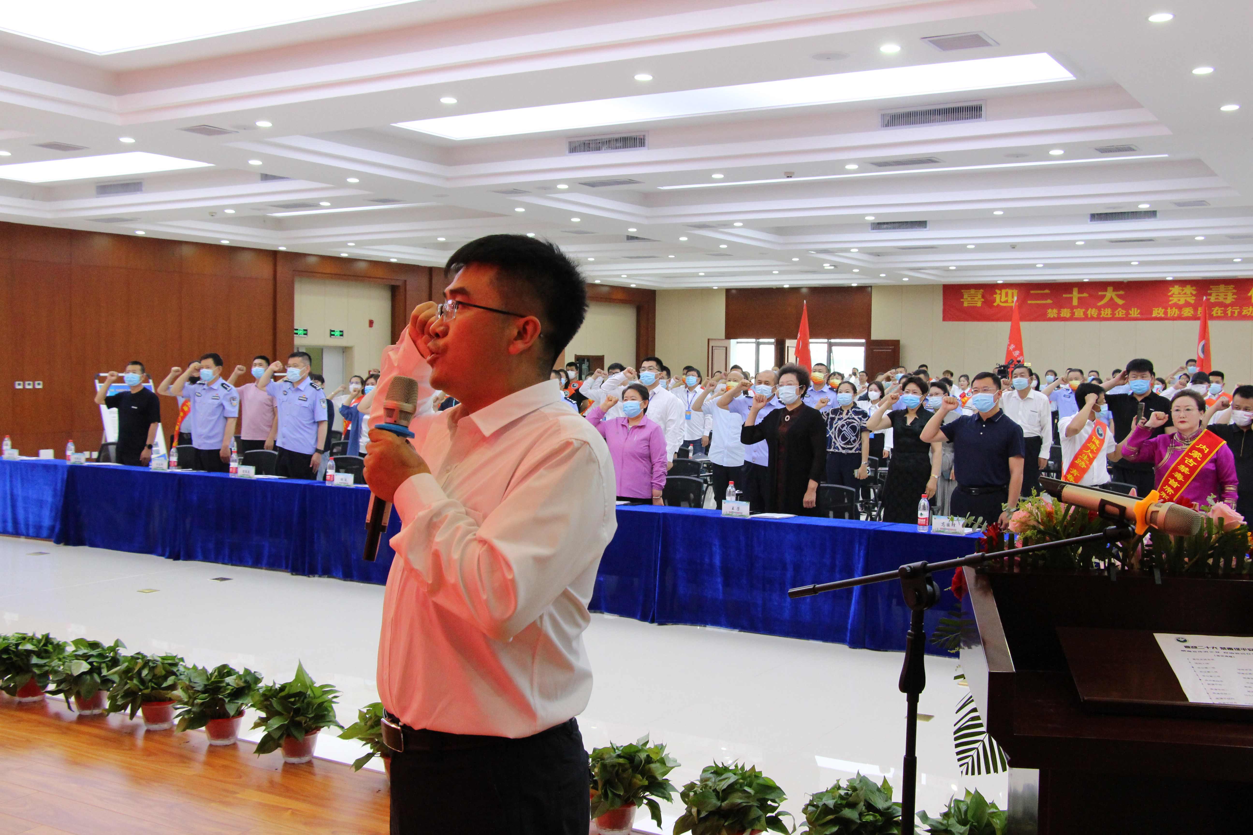 全體與會(huì)代表及公司員工在楊金光董事長的領(lǐng)誓下進(jìn)行莊嚴(yán)的禁毒宣誓。