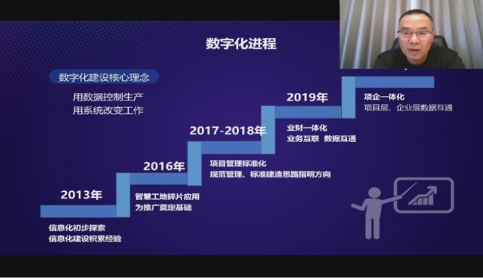 重慶大江建設(shè)工程集團總經(jīng)理姚斌在線做主題,為重慶大江企業(yè)的發(fā)展之路及歷程進行了分享。介紹了重慶大江企業(yè)從2013年到2022年的數(shù)字化發(fā)展進程,分享一體化建設(shè)方“用數(shù)據(jù)控制生產(chǎn),用系統(tǒng)改變工作”的核心理念以及如何與廣聯(lián)達業(yè)務(wù)系統(tǒng)之間實現(xiàn)一體化的具體流程的方向指引。
