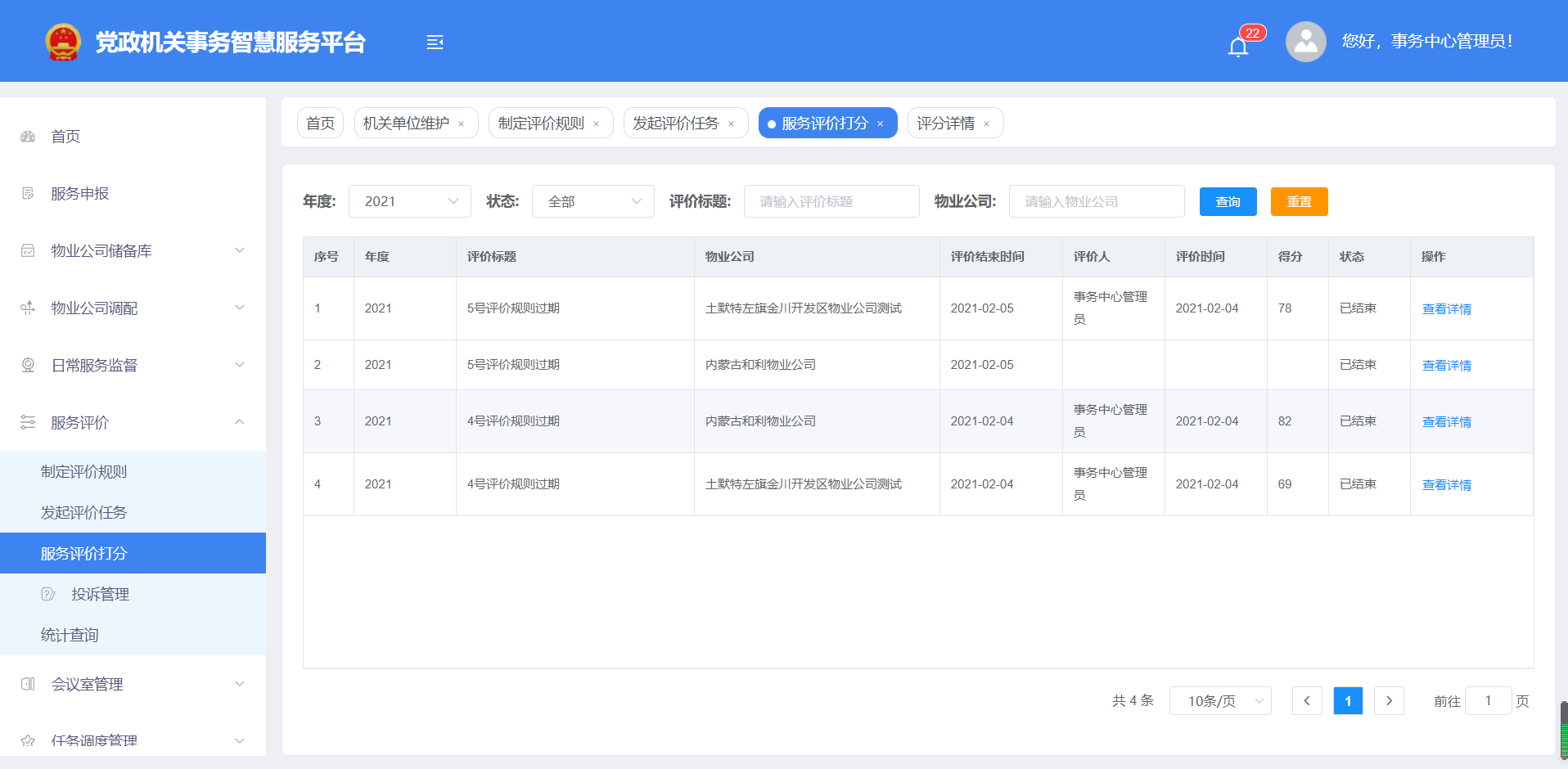 二、 黨政機關物業(yè)服務、服務評價等常用功能介紹: